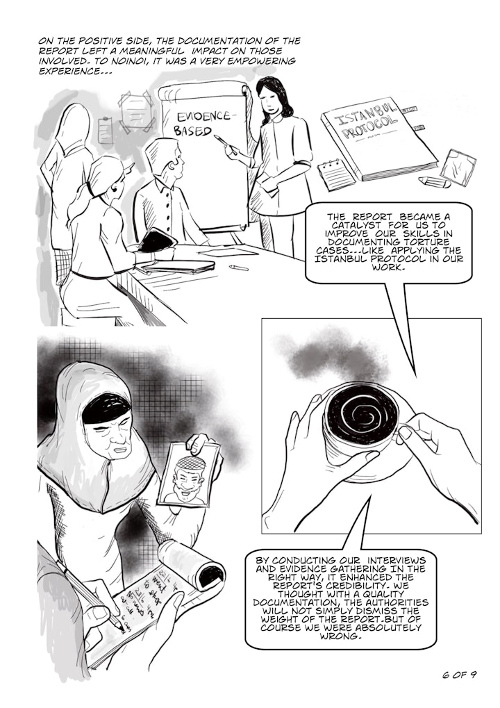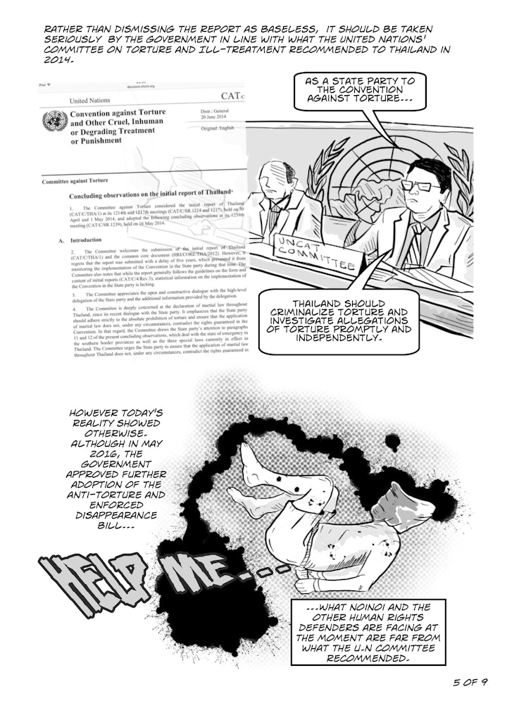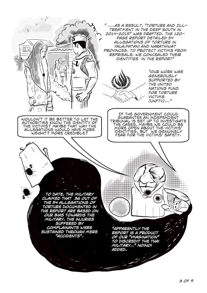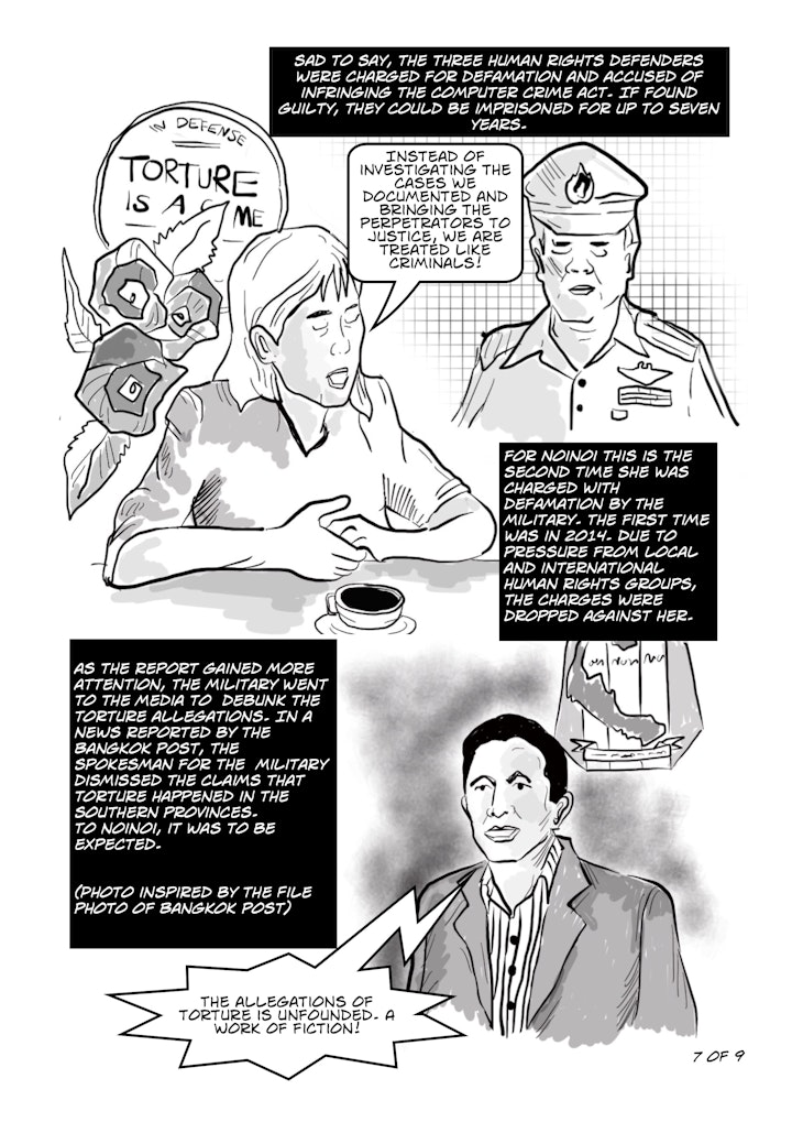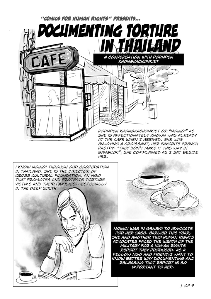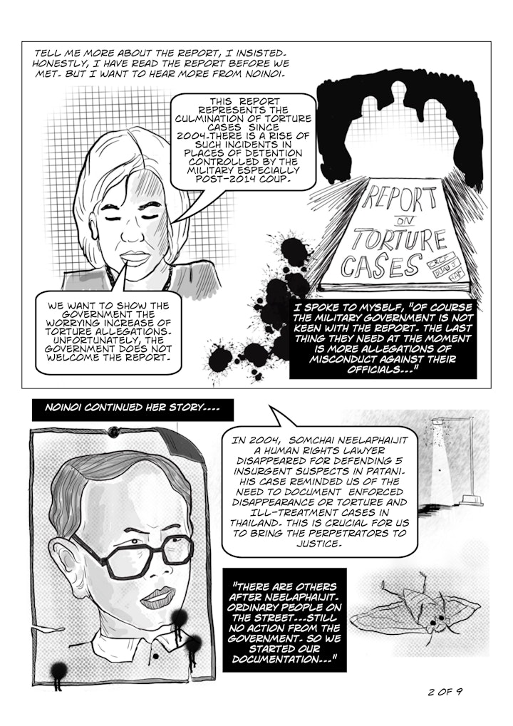 I met Pornpen in Bangkok. She is a passionate human rights advocate who was subjected to harrassment and legal action by the military for her courage and determination in exposing torture cases in the Deep South. This comic is not only about Pornpen, but how through her story, I learned more about the adversity and reprisals faced by human rights defenders in Thailand. This comic was published in “Article 2”, 2016, a regional law journal issued by the Asian Legal Resource Centre.
