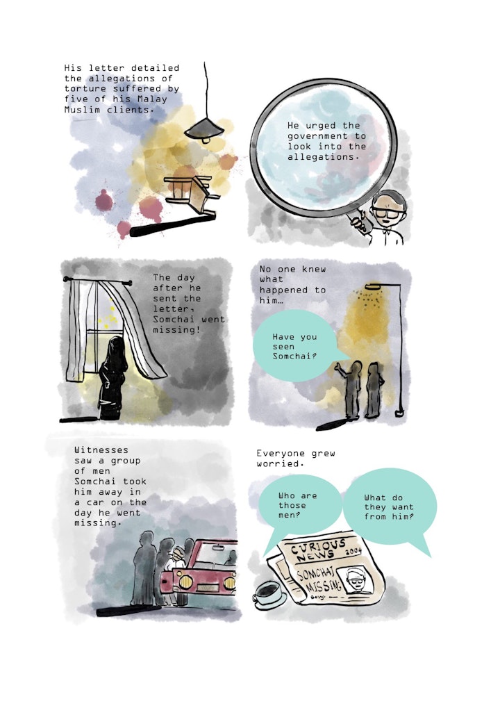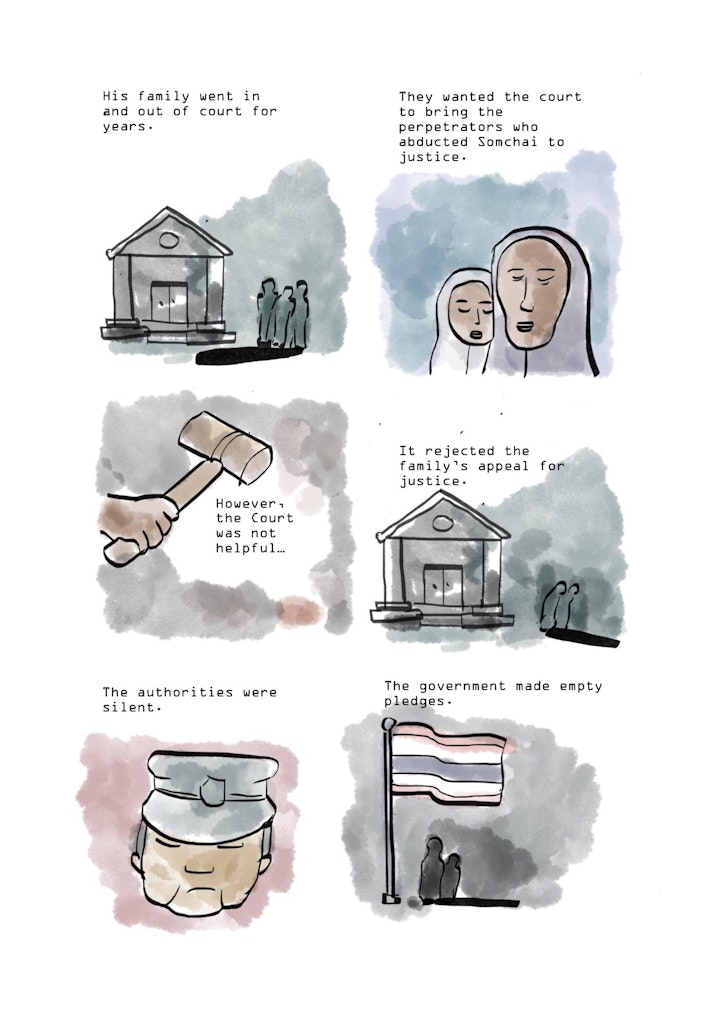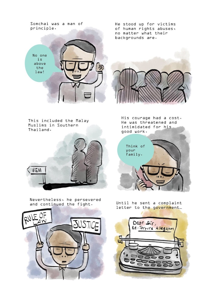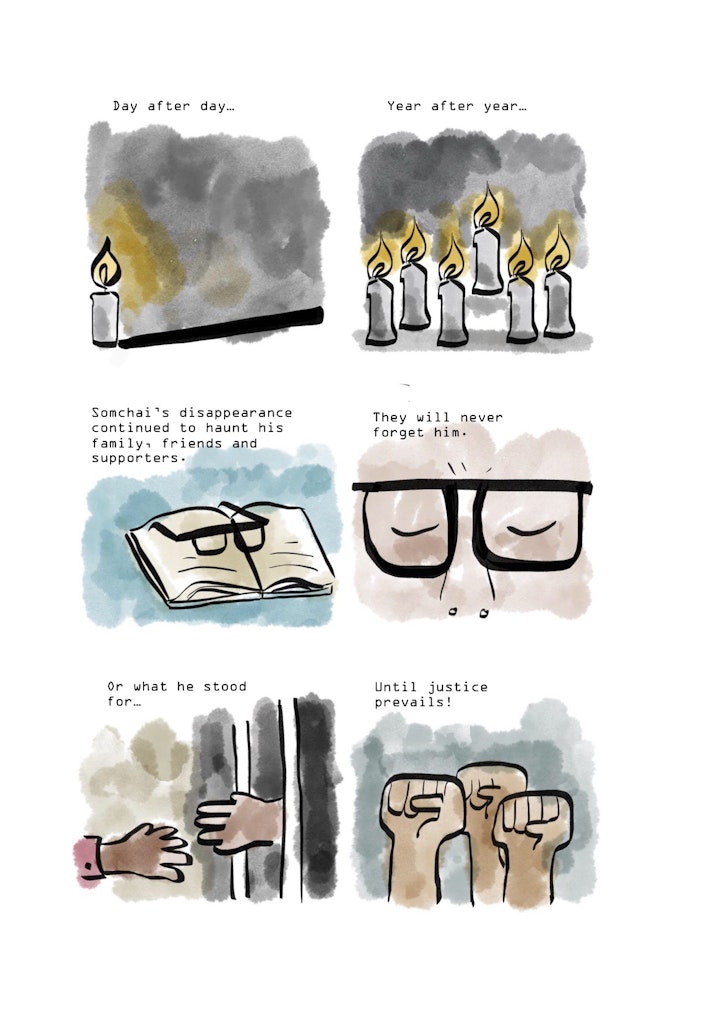 12 March 2019 is the 15th year anniversary of the enforced disappearance of Somchai Neelapaijit, a prominent human rights lawyer. I drew this short comic in conjunction with the anniversary, to support friends and colleagues who are continuing the fight for justice for Somchai in Thailand.